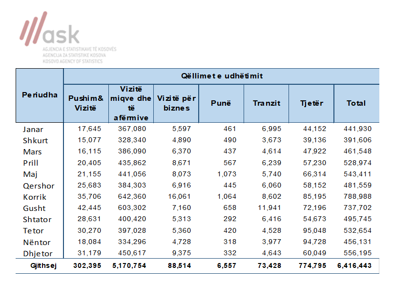 Mbi 6 milionë është numri i vizitorëve për vitin 2023 në Kosovë sipas Agjencisë së Statistikave të Kosovës.