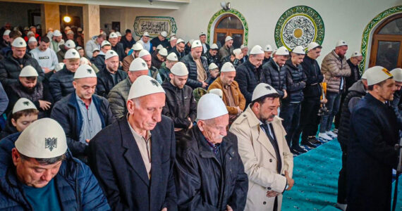 Besimtarët në Prizren falin Bajramin me plisa në kokë