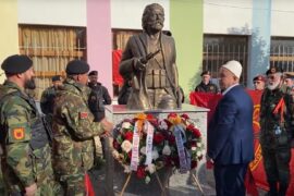 Spiropali nderime te monumenti i heroit kombëtar Gjergj Kastriot Skënderbeu në Shkupin e v...