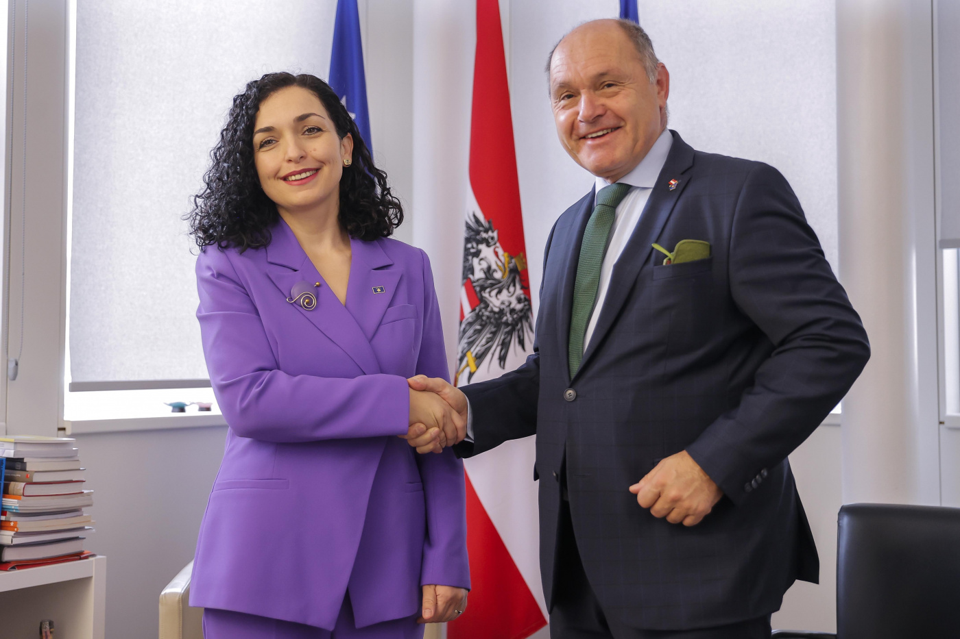 Me kryetarin e Parlamentit Austriak, Presidentja Osmani diskutoi edhe mbi thellimin e bashkëpunimit ndërparlamentar mes dy vendeve.