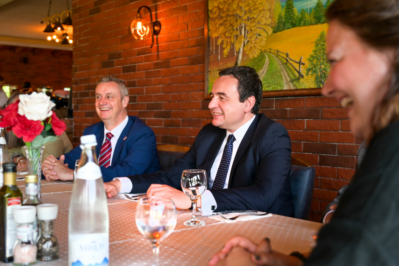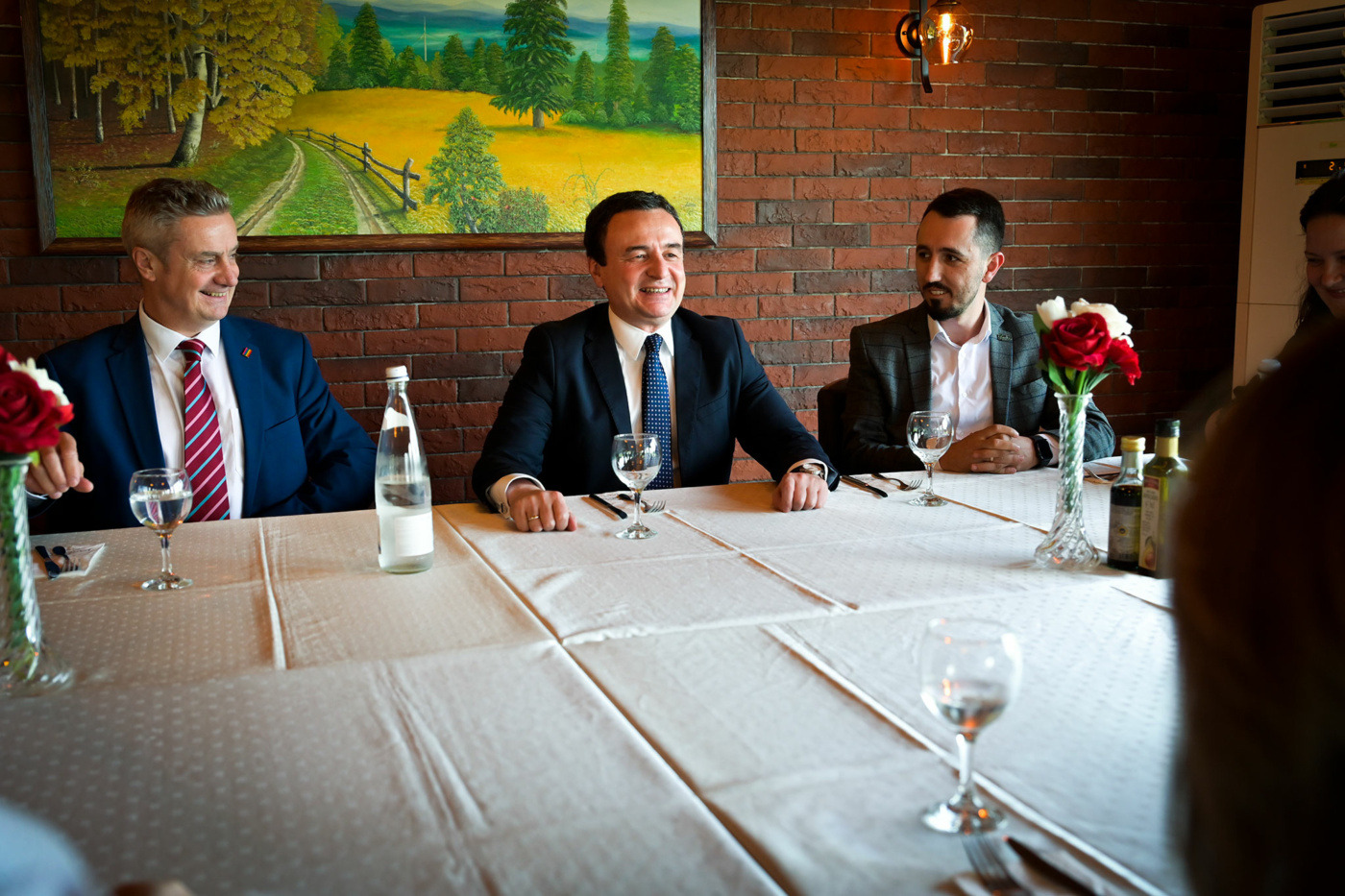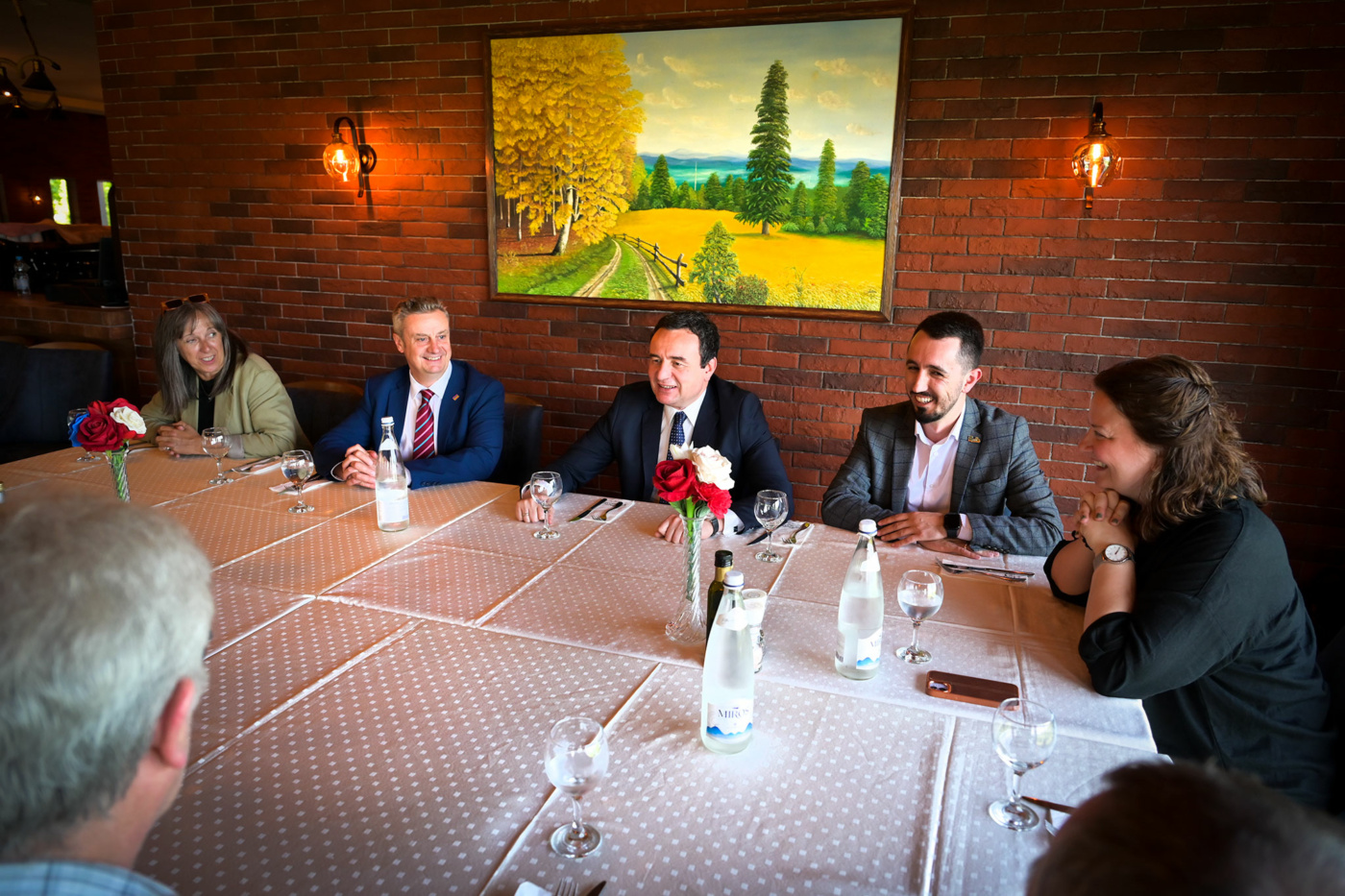 Kryeministri i Republikës së Kosovës, Albin Kurti, bashkë me Ambasadorin e Mbretërisë së Bashkuar në Kosovë, Jonathan Hargreaves dhe Kryetarin e Komunës së Kamenicës, Kadri Rahimaj, pati një drekë pune me një grup ekspertësh nga Irlanda Veriore dhe Kosova të cilët me punën e tyre kontribuojnë në fushën e ndërtimit të paqes përmes arsimit.