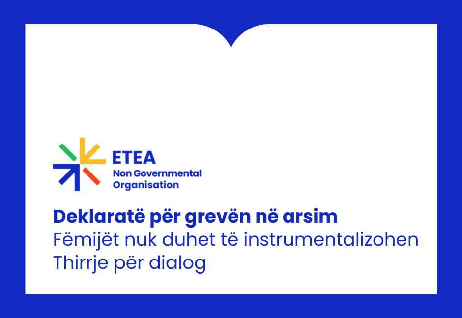 Organizata ETEA është duke e ndjekur me shqetësim situatën e krijuar nga institucionet relevante të arsimit dhe sindikatat, raportet e të cilëve po zhvillohen mbi kurriz të fëmijëve.