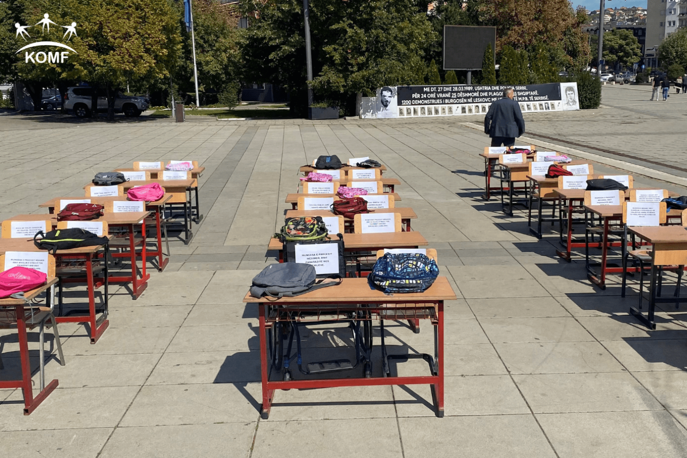Koalicioni i OJQ–ve për Mbrojtjen e Fëmijëve në Kosovë – KOMF prezantoi instalacionin simbolik “Fëmijët në Shkolla”.