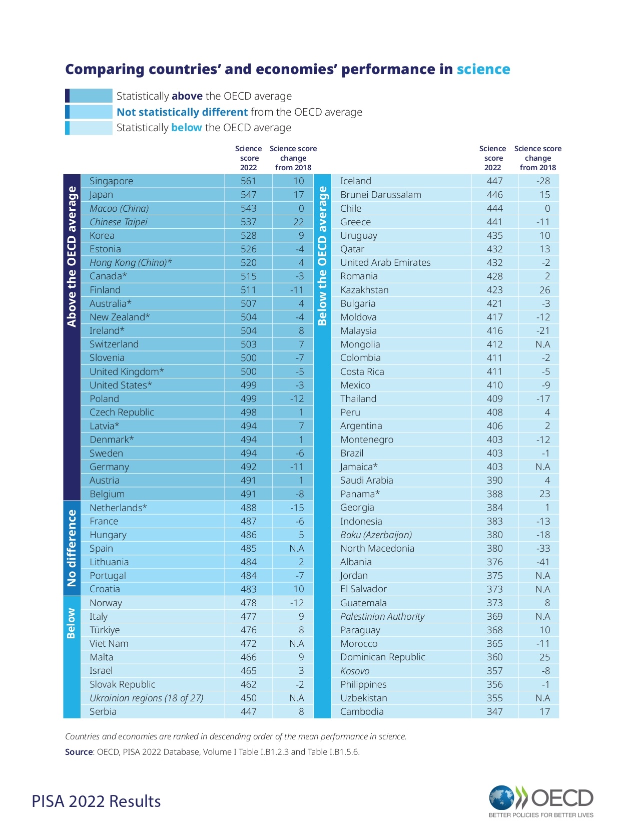 PISA është studim ndërkombëtar i arsimit që vlerëson kompetencat e nxënësve 15-vjeçar në lexim, matematikë dhe shkencë.