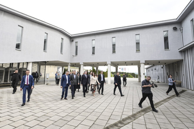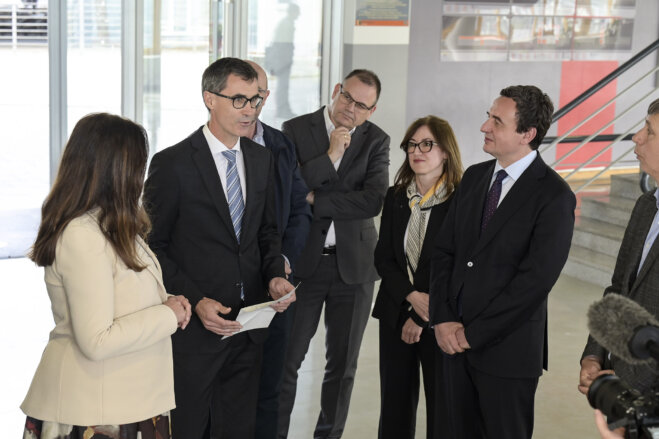 “Sistemin dual e kemi mësuar pikërisht nga Gjermania dhe Zvicra nga mërgata jonë, nga bashkatdhetarët tanë atje dhe e kemi thënë edhe më herët që, nëse fjala më e famshme gjermane në shekullin XX, në Kosovë ka qenë Gastarbeiter, tash jemi të interesuar që fjala më e famshme të jetë, Ausbildung. Pra, Ausbildung bëhet fjala më e famshme gjermane në Kosovë dhe ta marrin modelin gjerman, ashtu që t’i kemi edhe produktet sikurse në Gjermani, por edhe punëtorët sikurse në Gjermani. E këtu duhet ta falënderojmë Fondacionin “Besa” nga Augsburgu, Ilir Seferin, i cili ka dhënë gjithashtu një kontribut që sistemi dual që ky e ka praktikuar në Gjermani të ndërtohet bashkërisht me institucionet e shtetit dhe me këtë Qendër të Kompetencës në Skenderaj edhe këtu në Kosovë”, tha Kurti gjatë vizitës.