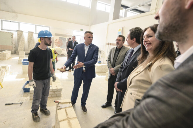 “Arsimi dual në profilin murator dhe punëtorë të ngjashëm ka filluar në vitin shkollor 2022/23. Planprogrami është hartuar sipas dhe nga ekspertët e fushës. Siç parasheh udhëzuesi, nxënësit kanë përfunduar tri vjet shkollim gjatë të cilëve 52% ka qenë pjesë praktike në ndërmarrjet përkatëse, dhe tash i nënshtrohen testeve teorike dhe praktike për certifikim”, thuhet në njoftimin nga ZKM.