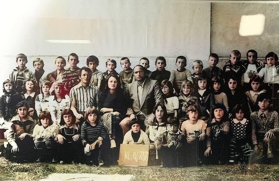 (Fotografi nga klasa ime e IV, ku janë edhe mësuesit Bajram Çekaj, Nife Haskaj dhe Miftar Çekaj.)”, shkruan Haradinaj në Facebook./arbresh.info/