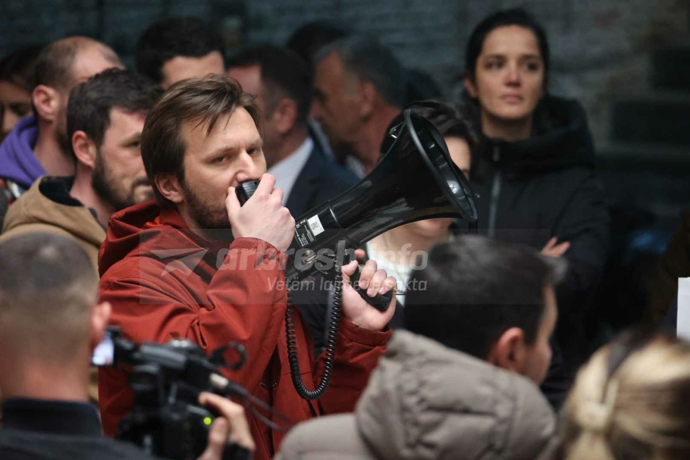 “Rekomandohet përjashtimi i menjëhershëm nga Qeveria”, thuhet në pankartën e PSD-së./Arbresh.info/