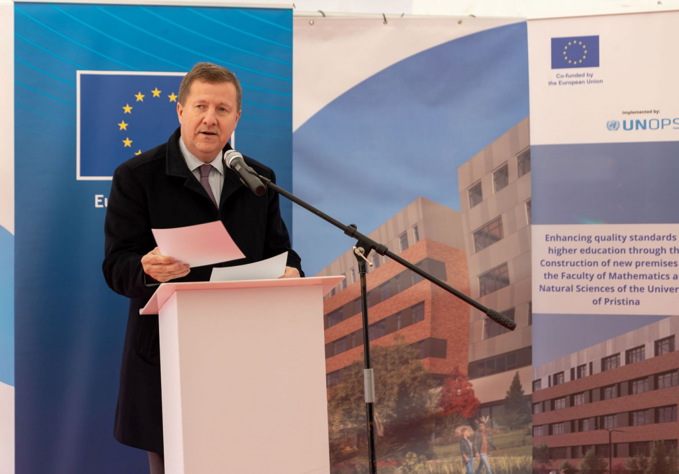 Ambasadori i BE-së në Kosovë, Tomas Szunyog dhe Rektori i Universitetit të Prishtinës (UP), Prof. Dr. Qerim Qerimi, shënuan sot fillimin e ndërtimit të objekteve të reja për Fakultetin e Shkencave Matematiko-Natyrore (FSHMN).