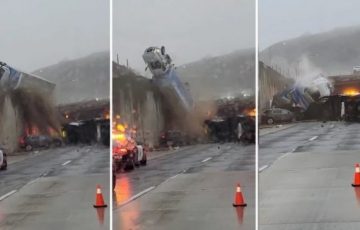 • Pamje si në filma në Los Angeles: Kamioni bie mbi veturat që ishin aksidentuar ...