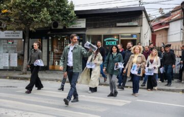 • Uran Ismaili me aktivistë të shumtë shpërndan numrin e radhës të gazetës me thi...