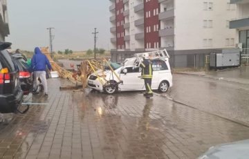 • Era e fortë rrëzon vinçin mbi një veturë në Gjilan