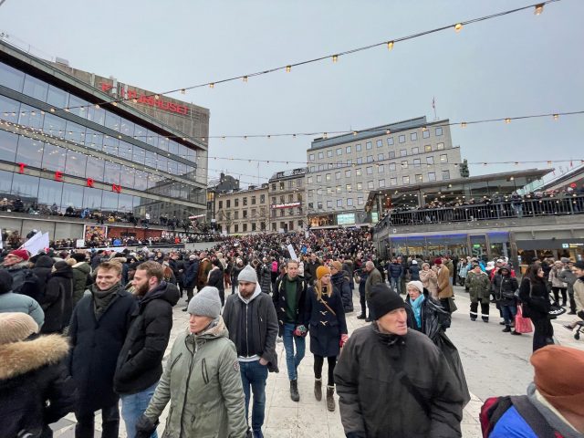 Në qendër të Stokholmit janë mbledhur mijëra njerëz për të protestuar kundër pasaportës së vaksinës të shtunën.