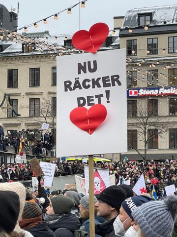 Në qendër të Stokholmit janë mbledhur mijëra njerëz për të protestuar kundër pasaportës së vaksinës të shtunën.