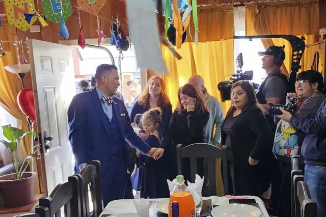 Një prej tyre është familja e Thaiden, e cila udhëtoi drejt Kilit me gruan dhe dy vajzat për t’i takuar. Momenti ishte shumë emocionues teksa Thaiden hyri në shtëpinë e nënës së tij ku u prit me 42 tullumbace.
