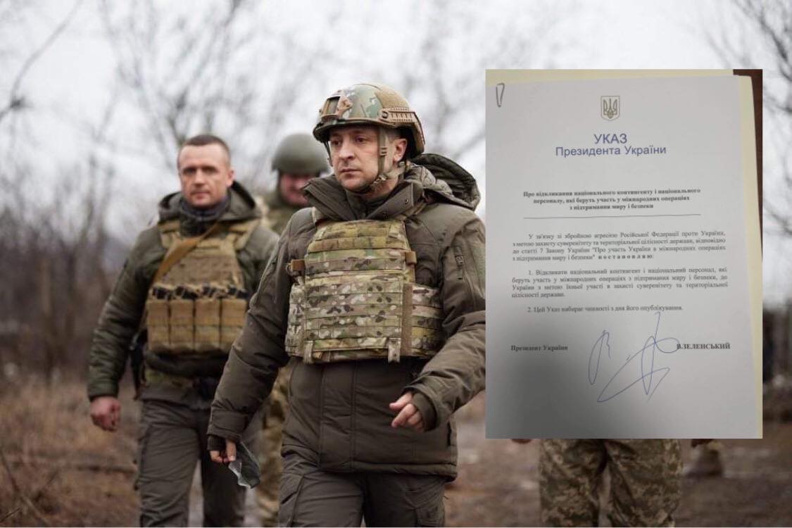 Presidenti i Ukrainës, Zelensky urdhëroi tërheqjen e trupave ukrainase nga të gjitha misionet paqeruajtëse në botë, po ashtu ka urdhëruar edhe tërheqjen e të gjitha pajisjeve.