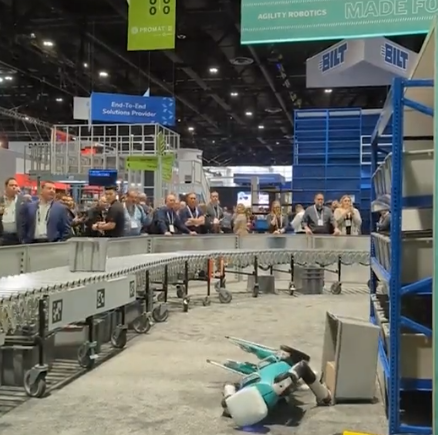 With a 99% success rate over about 20 hours of live demos, Digit still took a couple of falls at ProMat.