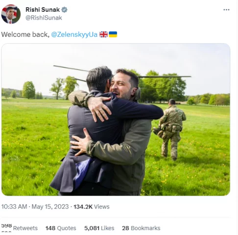 Kryeministri i Mbretërisë së Bashkuar Rishi Sunak ka postuar në Twitter një foto të mbërritjes së Volodymyr Zelenskyy në Chequers.