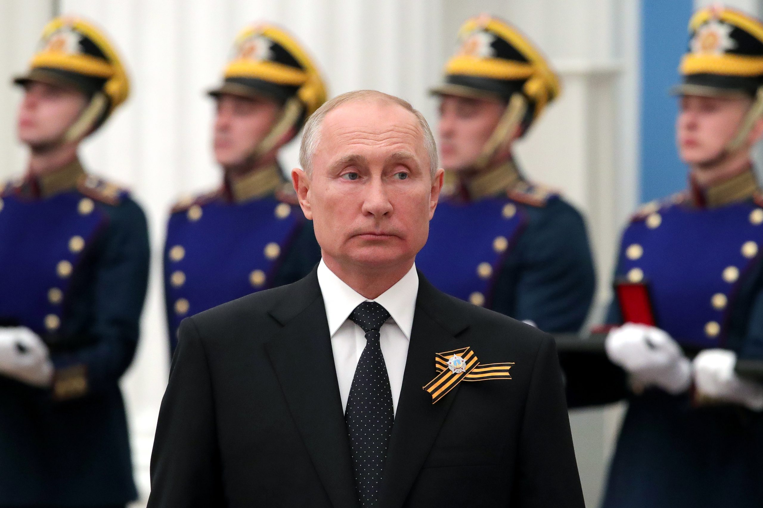 MOSCOW, RUSSIA - JUNE 24, 2020: Russia's President Vladimir Putin attends a ceremony at the Moscow Kremlin to hand out national awards in the fields of science and technology, literature and art, humanitarian efforts, charity and human rights advocacy for the previous year. Mikhail Klimentyev/Russian Presidential Press and Information Office/TASS (Photo by Mikhail KlimentyevTASS via Getty Images)