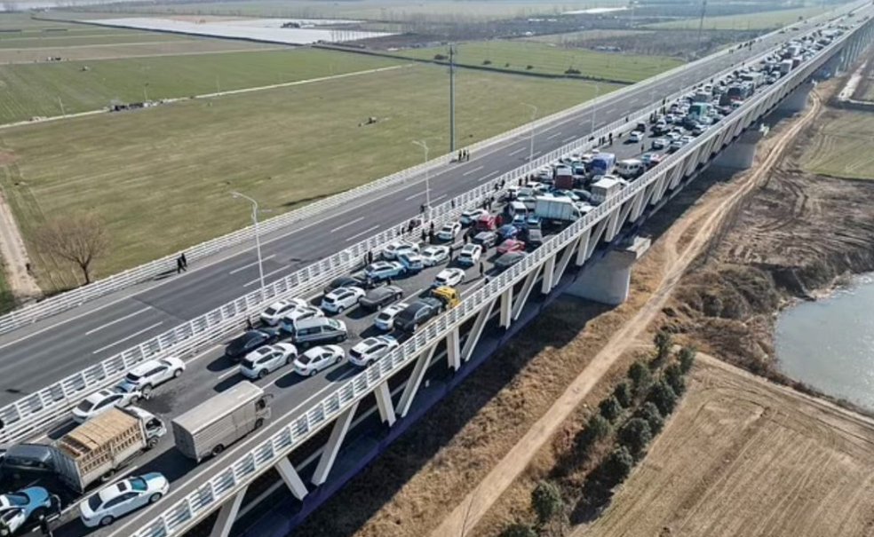 Makina dhe kamionë u përplasën në urën Huange në Zhengxin, në një aksident që mendohet të ketë ardhur si pasojë e mjegullës.