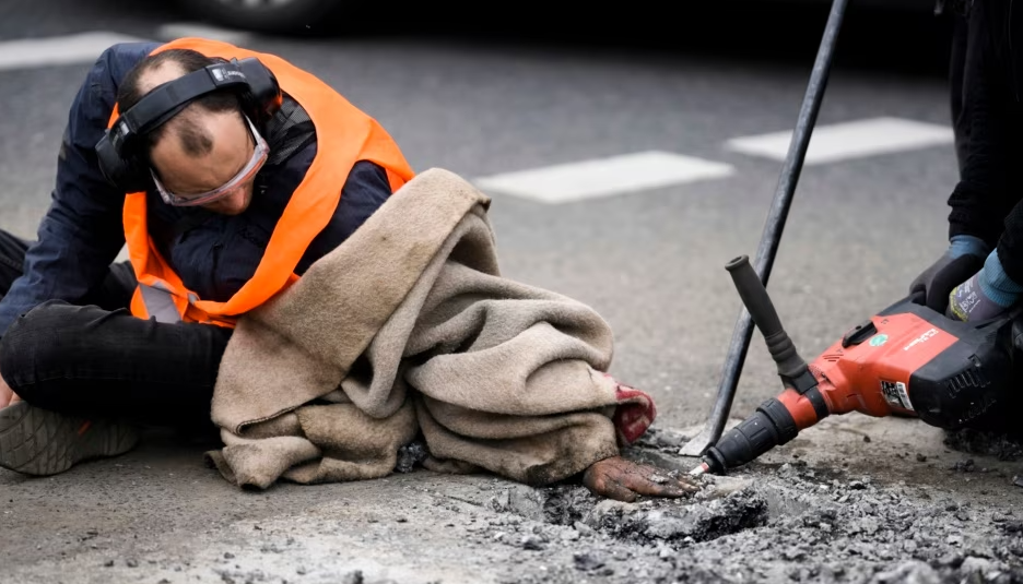 Në disa zona, aktivistët janë ngjitur për asfalti, ka thënë policia, një veprim që e ka kryer grupi edhe në të kaluarën.