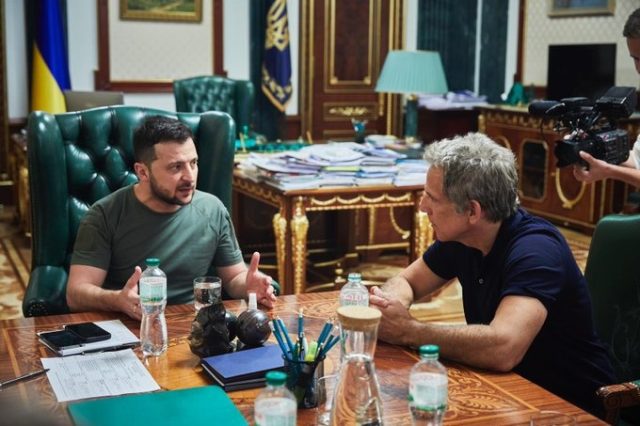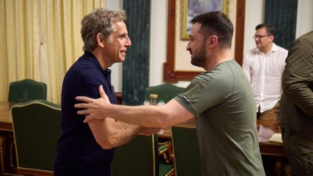 Stiller u takua me Presidentin Volodymyr Zelensky në kryeqytetin e Ukrainës, Kiev, në rolin e tij si ambasador i vullnetit të mirë për agjencinë e Kombeve të Bashkuara për refugjatët (UNHCR), shkruan BBC, transmeton portal arbresh.info