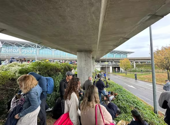 Një gazetar tjetër lexues që po pret jashtë aeroportit thotë: “Pasagjerët janë ulur edhe në shkurre sepse parkingu është plot dhe nuk ka mundësi të tjera”. Në një foto të bërë nga lexuesi mund të shihni se si disa njerëz po strehohen nga shiu nën një urë./Arbresh.info/