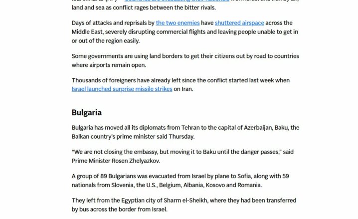 Sipas raportimeve ndërkombëtare, një grup prej 89 shtetasish bullgarë dhe 59 të tjerë nga vende të ndryshme, përfshirë Shqipërinë, Kosovën, SHBA-në, Slloveninë, Belgjikën dhe Rumaninë, janë larguar të sigurt nga zona e konfliktit, raporton AP.