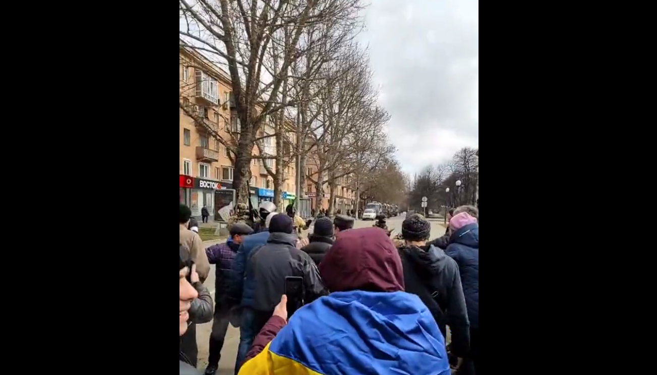 Day 14. Good morning. Video: Kherson – the only regional capital that has fallen. Ukrainian crowd of protestors gets angry after Russian troop start beating up a protestor. Russians open fire (in the air) and that does not stop but mobilize protestors. Pure anger and no fear pic.twitter.com/MQQJwyyVju