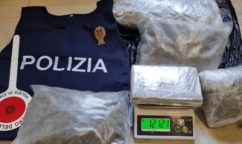Në makinë iu gjet 1 kg e 100 gram kokainë dhe 2.6 kg marijuanë u gjetën në shtëpinë ku banonte në zonën e Borgo Panigale.