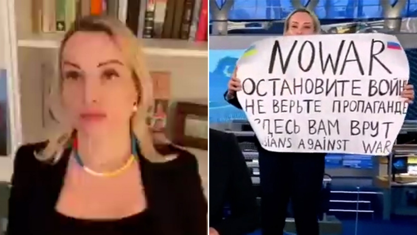 Ovsyannikova më 14 mars u shfaq në transmetim të drejtpërdrejt në një program informues të televizionit rus, Channel One, duke mbajtur në duar një pano ku ndër të tjera shkruhej: “Ndaloni luftën. Mos i besoni propagandës. Ata po ju gënjejnë”. Ajo po ashtu bërtiti: “Ndaloni luftën. Jo luftës”.