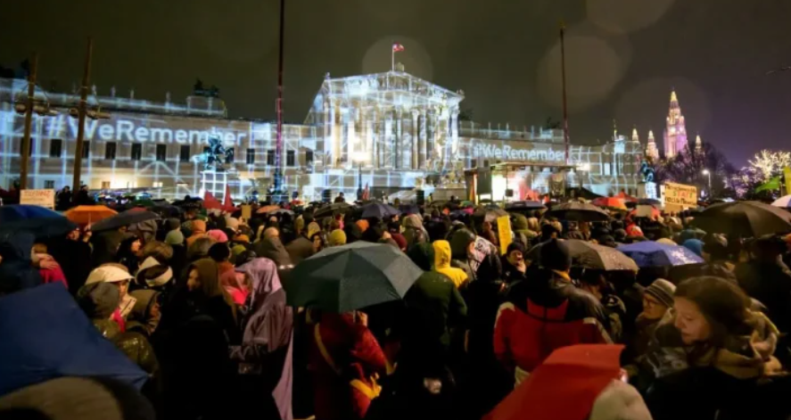Dhjetëra mijëra njerëz protestuan sot në Vjenë kundër formimit të një qeverie të udhëhequr nga Partia e Lirisë së ekstremit të djathtë (FPÖ), në Austri. Sipas autoriteteve, vetëm në Vjenë, rreth 25 000 njerëz u mblodhën para zyrës së kancelarit në mbrëmje. Protesta u zhvilluan edhe në Innsbruck, Salzburg dhe Graz.