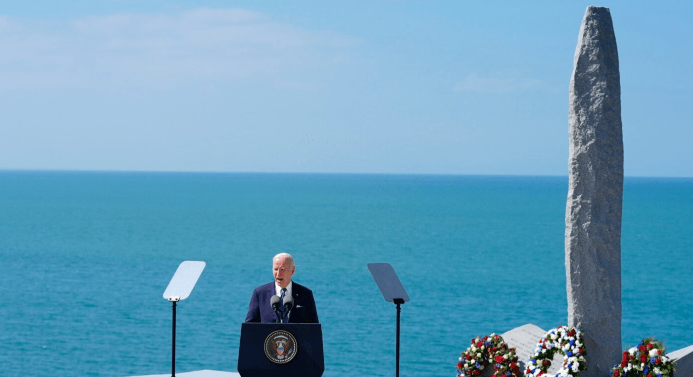 Presidenti i Shteteve të Bashkuara, Joe Biden, e përdori heroizmin e ushtarëve amerikanë, të cilët u ngjitën në shkëmbinjtë e Pointe du Hoc në Ditën D të pushtimit para 80 vjetëve, për të bërë thirrje për mbrojtjen e demokracisë brenda dhe jashtë vendit.