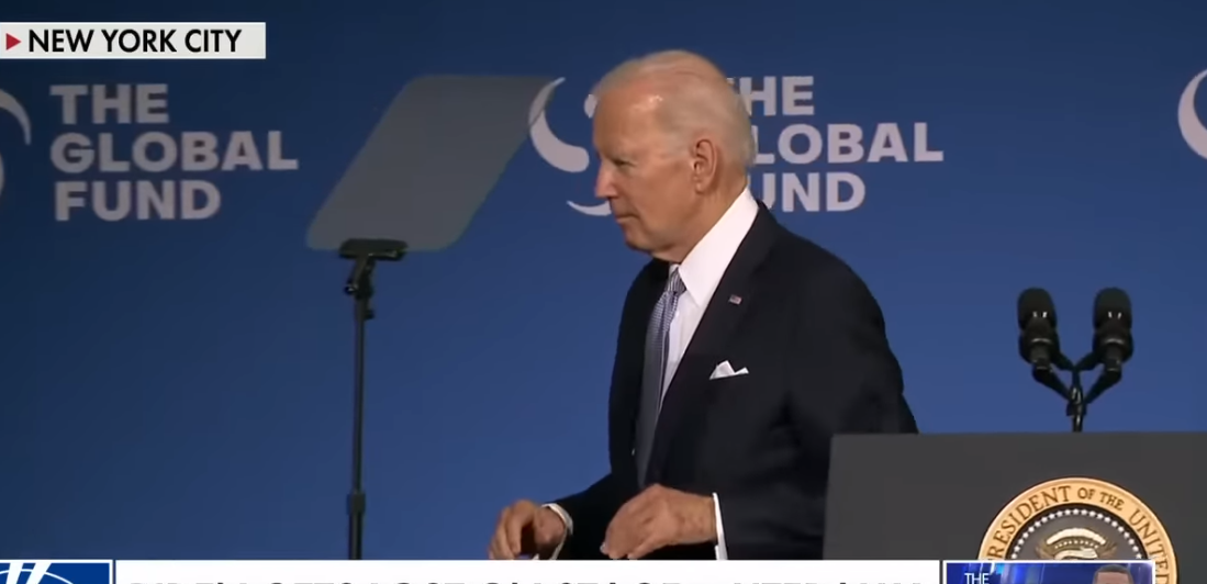 Presidenti amerikan, 79-vjeçar, po dilte nga skena pas fjalimit në Konferencën e Fondit Global ndërsa shpërthyen duartrokitjet.