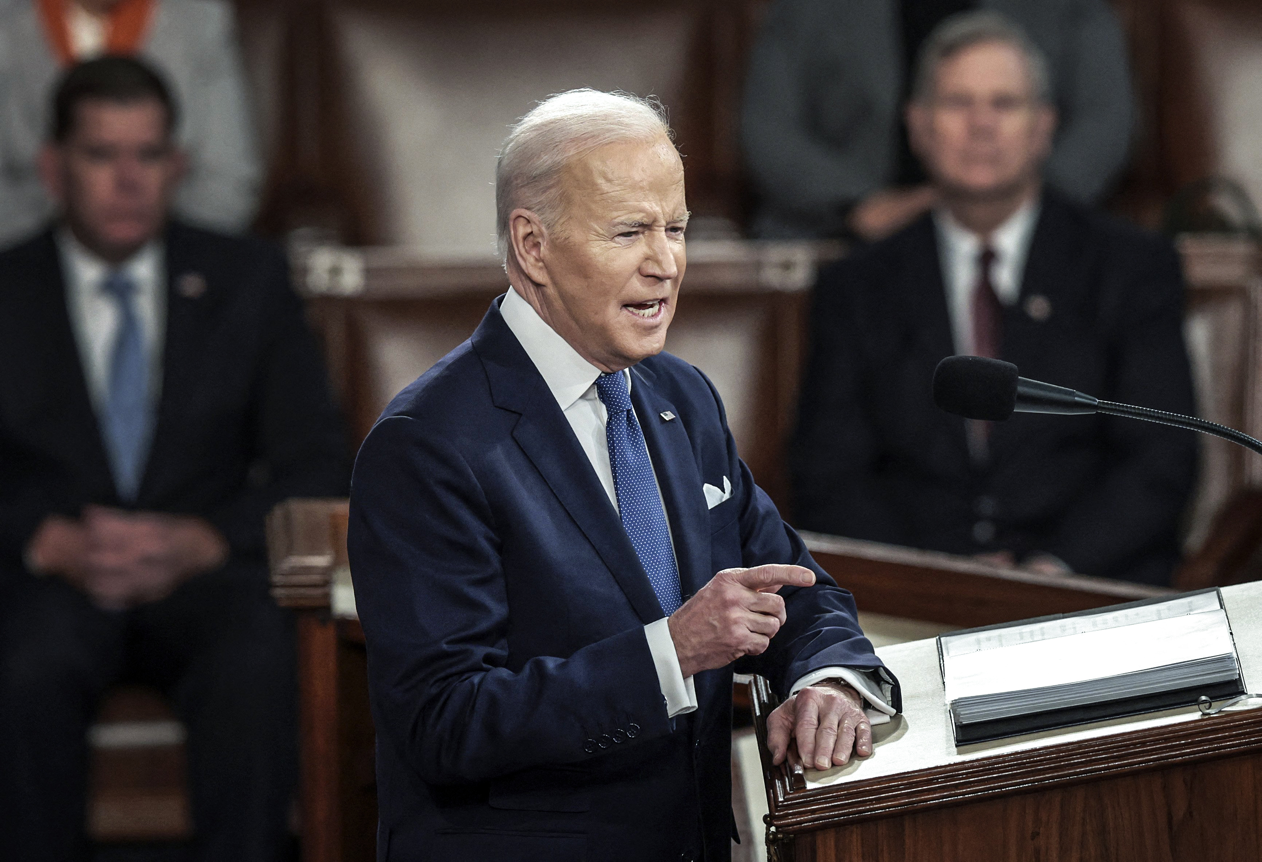 US President Joe Biden delivers the State of the Union address during a joint session of Congress in the US Capitol's House Chamber March 01, 2022 in Washington, DC. (Photo by Win McNamee / POOL / AFP) (Photo by WIN MCNAMEE/POOL/AFP via Getty Images)