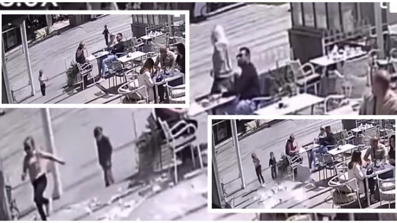 Kamerat e sigurisë në afërsi të një kafiteri në Podgoricë të Malit të Zi, ka kapur momentin kur fasada e një ndërtese bie dhe për pak centimetra nuk përfundon mbi kokën e dy fëmijëve që po luanin.