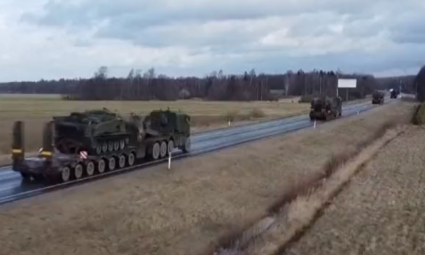 Në pamjet që po qarkullojnë shihen një numër i madh i pajisjeve ushtarake dhe tankeve britanike duke hyrë në Estoni.