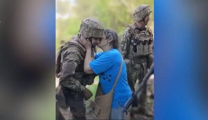 Një grua puthi një ushtar ukrainas, ndërsa të tjerët telefonuan të afërmit për t’u thënë se ishin të sigurt, në një video të publikuar nga brigada e 47-të e mekanizuar.