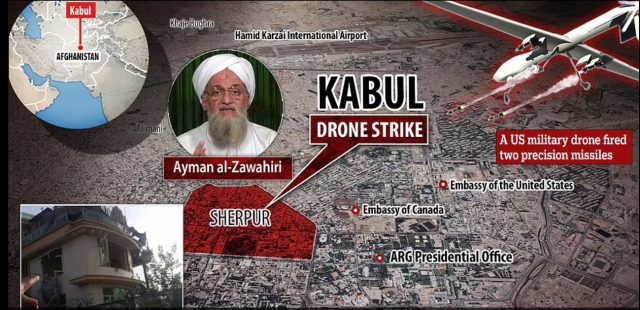 Presidenti i Shteteve të Bashkuara Joe Biden njoftoi më 1 gusht 2022, se një nga terroristët më të kërkuar në botë, Ayman al-Zawahiri, lideri i al-Kaedës që mbikëqyri sulmet e 11 shtatorit 2001, së bashku me Osama bin Laden, ka qenë të vrarë gjatë një operacioni antiterrorist. Ky ishte operacioni i parë i këtij lloji në Afganistan që nga tërheqja nga vendi vitin e kaluar.