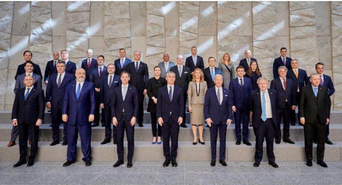 Ne, krerët e shteteve dhe qeverive të 30 aleatëve të NATO-s, jemi takuar sot për të trajtuar agresionin e Rusisë kundër Ukrainës, kërcënimi më i rëndë për sigurinë euroatlantike në dekada. Lufta e Rusisë kundër Ukrainës ka shkatërruar paqen në Evropë dhe po shkakton vuajtje dhe shkatërrime të mëdha njerëzore.