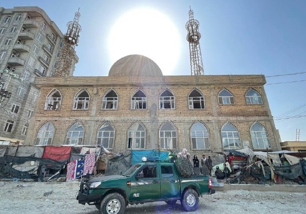 MAZAR-I SHARIF - AFGHANISTAN - APRIL 21: A view from the Seh Dokan mosque after a blast that hit the mosque located in a busy area of Mazar-i-Sharif, Afghanistan April 21, 2022. At least 10 people were killed and many others injured in the blast. (Photo by Sayed Khodaiberdi Sadat/Anadolu Agency via Getty Images)