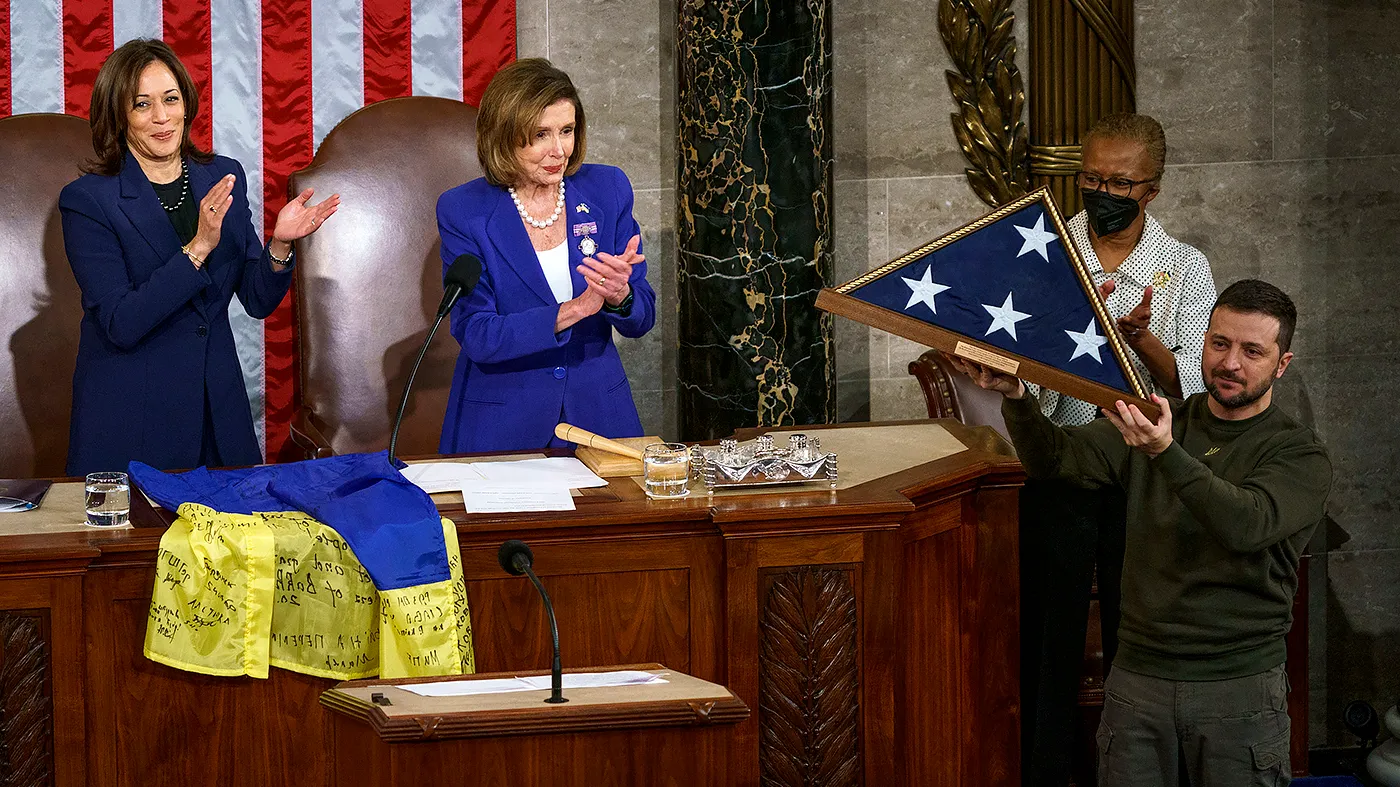 Kryetarja e Dhomës së Përfaqësuesve, Nancy Pelosi i ka dhuruar Presidentit të Ukrainës, Volodymyr Zelenskyt, flamurin amerikan që valoi mbi Capitol Hill, gjatë vizitës së tij të mërkurën.