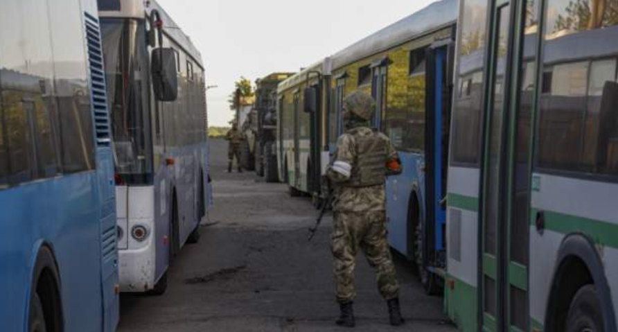 Autobusët e milicisë së vetëshpallur të Republikës Popullore të Donetskut u përgatitën për evakuimin e ushtarëve ukrainas nga fabrika e çelikut Azovstal në Mariupol, sipas BBC.