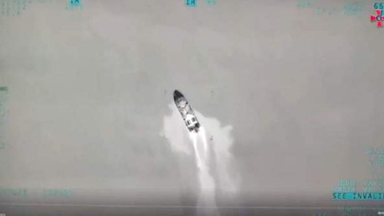 Pamjet e paverifikuara të dronit të publikuara nga ushtria ukrainase duket se tregojnë dy anije që janë shënjestruar nga raketat nga ajri derisa po patrullonin në Detin e Zi.