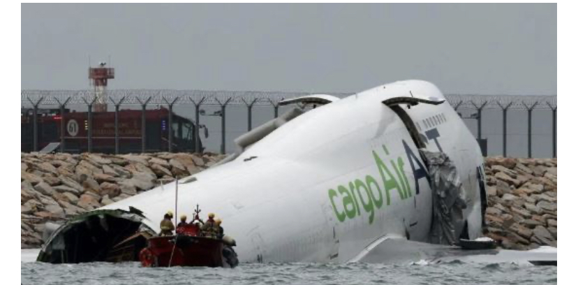 Një aeroplan rrëshqiti nga një pistë në Aeroportin Ndërkombëtar të Hong Kongut dhe u ul në det herët të hënën, duke vrarë dy anëtarë të stafit tokësor.