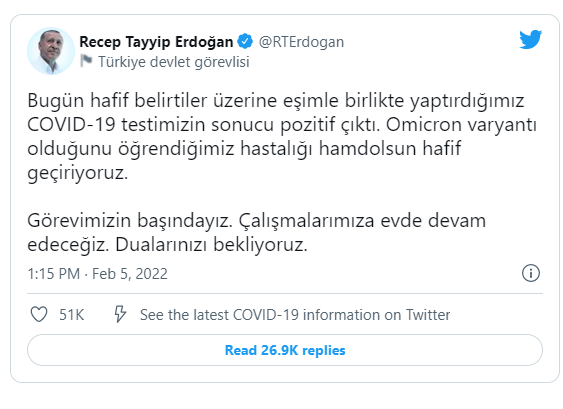 — Recep Tayyip Erdoğan (@RTErdogan) February 5, 2022