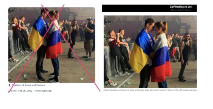 Imazhi, i cili u shpërnda në mënyrë të përsëritur në postimet që e lidhin me luftën në Ukrainë, ka qarkulluar në raporte që nga viti 2019 për një çift të përqafuar në një koncert në Poloni.