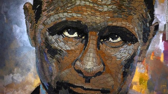 Portreti u krijua nga një artist ukrainas në vitin 2015 në përgjigje të konfliktit Rusi-Ukrainë në rajonin lindor të Ukrainës, Donbas. Gjobat e plumbave të përdorura në mural u mblodhën në vitin 2014 nga fronte të ndryshme beteje në rajon. Murali nuk lidhet me pushtimin aktual të Ukrainës./arbresh.info/