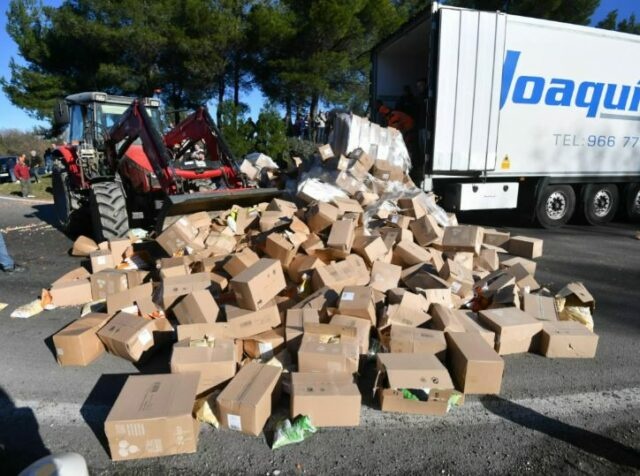 BFM TV tregoi imazhe të frutave që tha se ishin importuar nga Spanja dhe Belgjika dhe ishin dëmtuar në anën e autostradës A7 në Francën jugore. Disa kamionë u bllokuan në autostradën A7 pranë fshatit Montelimar në rajonin Auvergne-Rhône-Alpes.