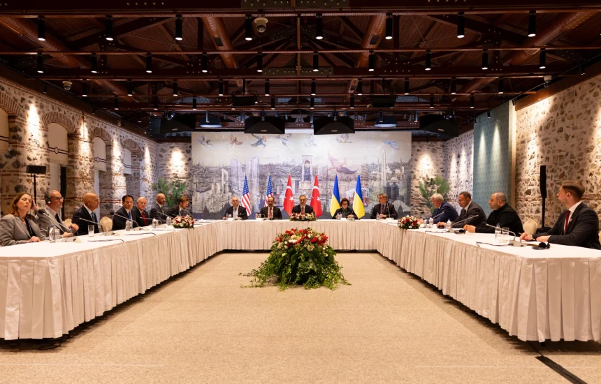 Takimi trepalësh ndërmjet delegacionit të Shteteve të Bashkuara të Amerikës, Ukrainës dhe Turqisë sapo ka filluar në Pallatin Dolmabahçe, në Stamboll, raporton BBC.